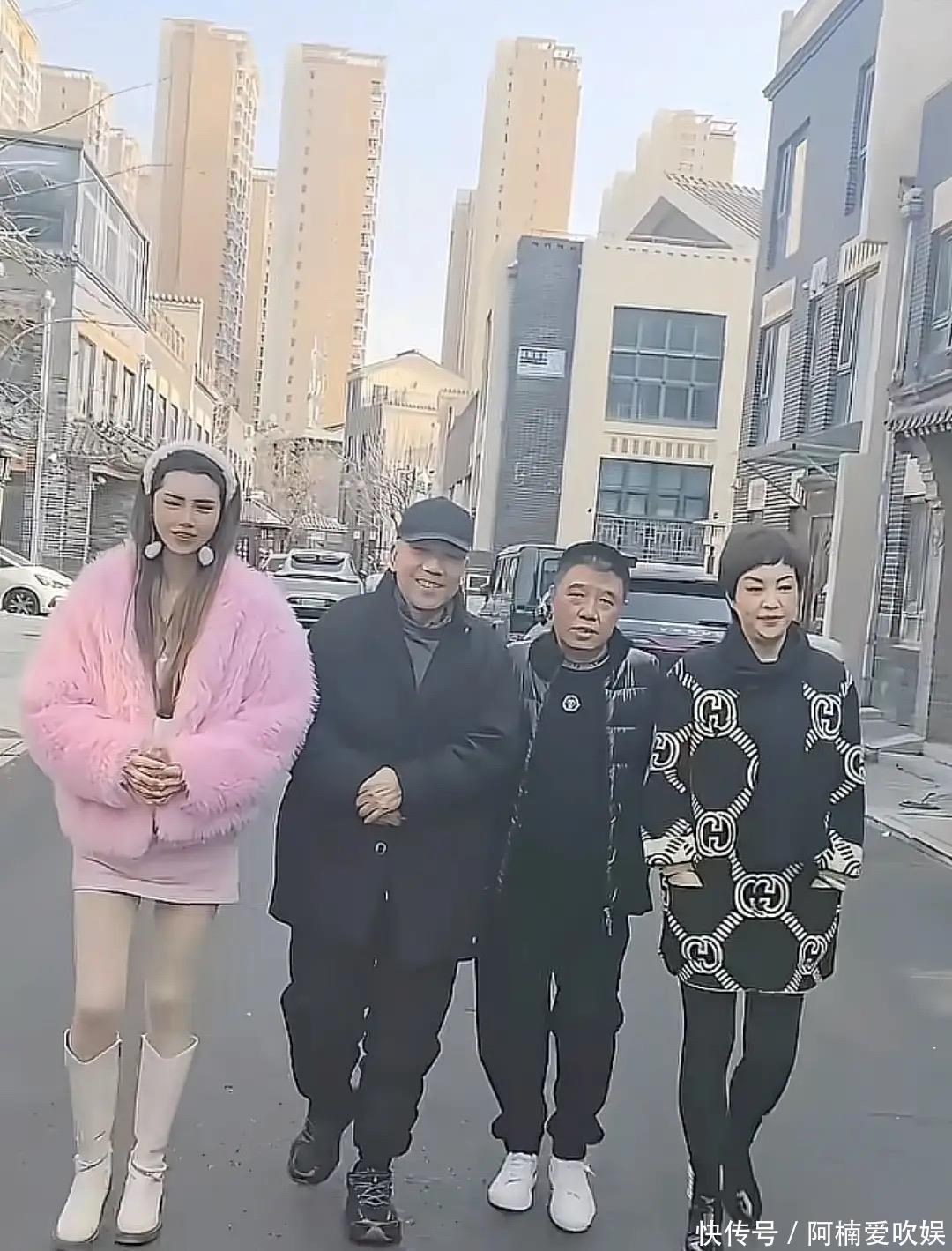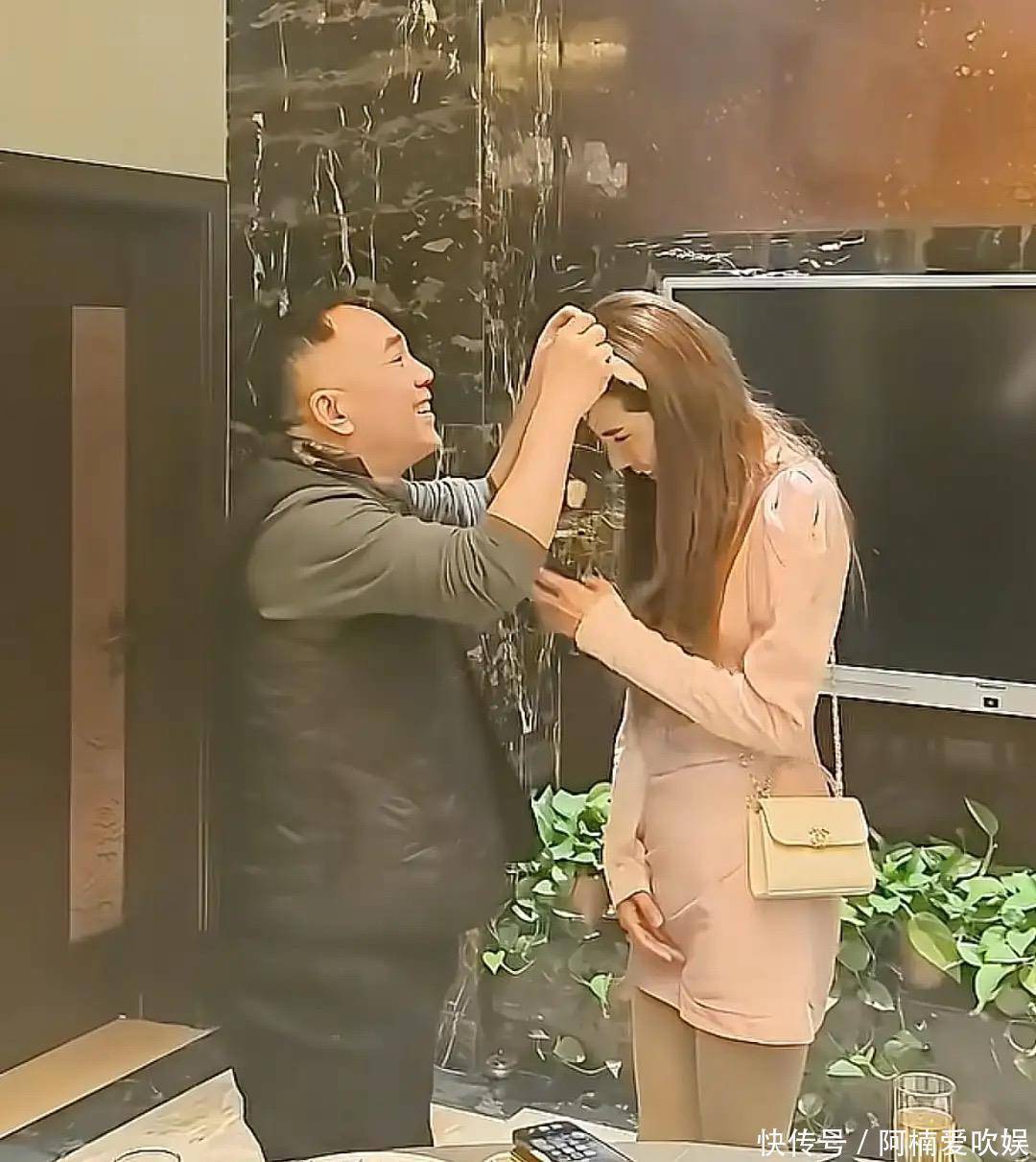 就是这位一身粉衣的女子,别看她穿得这么嫩,其实本人已经43岁了。粉色皮草、粉色超短裙粉色发箍、白色长靴,活脱脱像20岁少女的打扮。女网红个子高、颜值也不差。但这一身粉衣,有一种很土气的感觉。不过站在穿黑袄子的杨议面前,还是美得醒目。