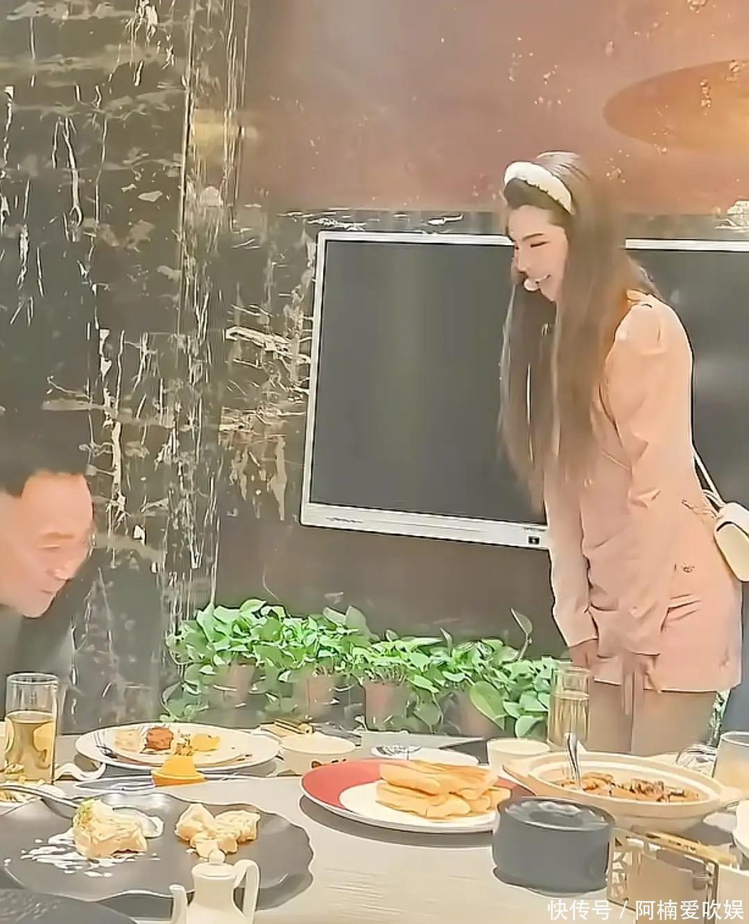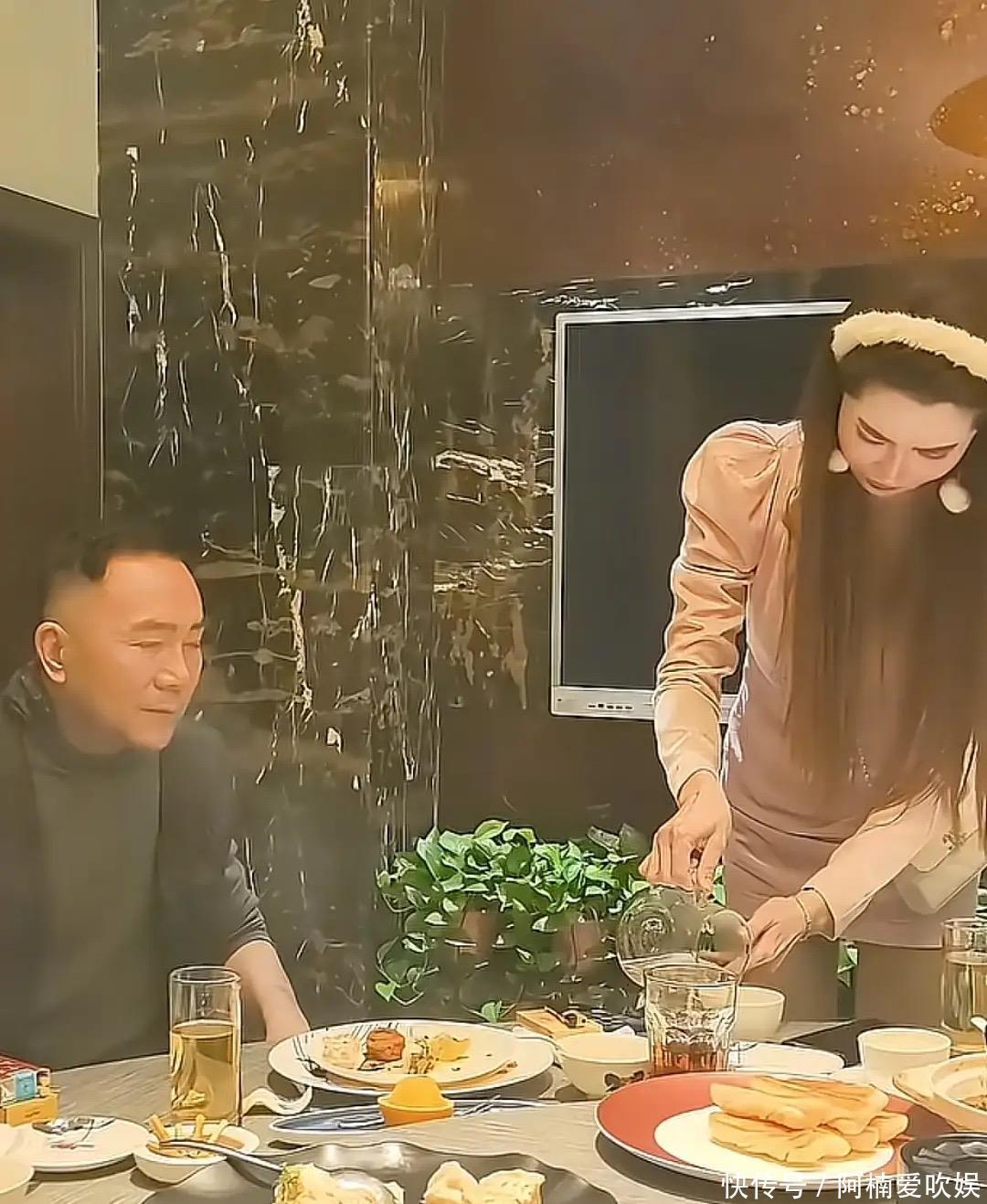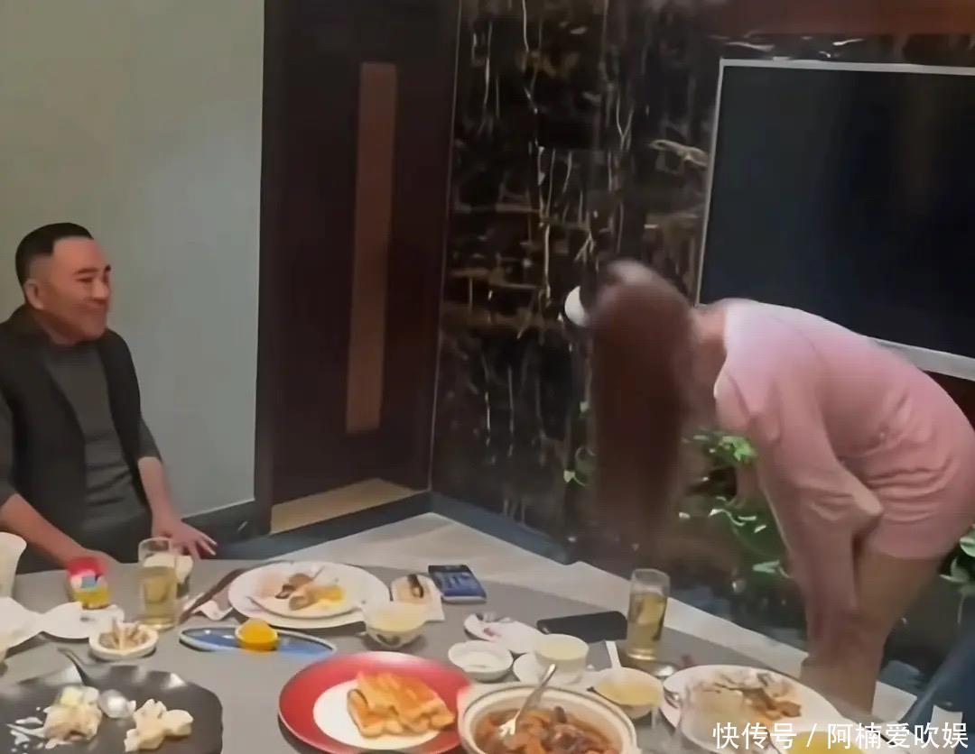 一行人来到酒店包间后,网红美女开始给杨议敬酒。美女脱下粉色皮草外套、身材很苗条,看起来高高瘦瘦的,不说她43岁还真看不出来。杨议安静的坐在一边,等着美女徒弟敬酒。他微微眯着眼睛,派头很足。自幼跟着父亲学相声,杨议也算是混出名堂了。
